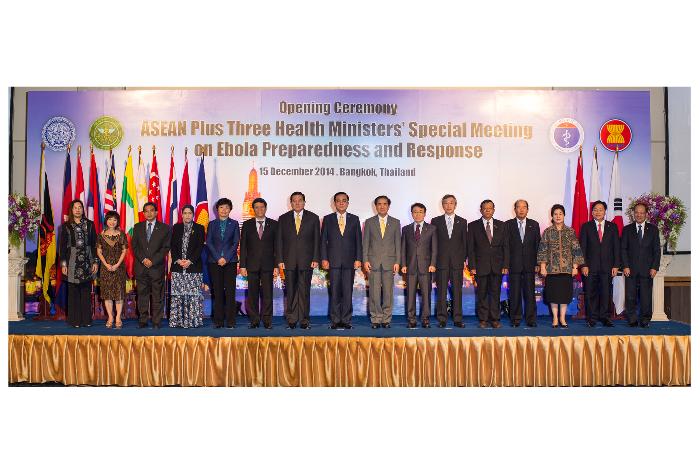 Thailand’s premier attended the opening ceremony and delivered a speech. Dr Margaret Chan, director-general of the WHO; Anthony Banbury, head of the UN Ebola response mission; and Abu Bakarr Fofanah, health minister of Sierra Leone, delivered speeches through video, appealing the international community to pay attention to the Ebola epidemic and provide supplies and aid to West African countries. They also praised the cooperation of China, Japan, Korea and the ASEAN in fighting Ebola.