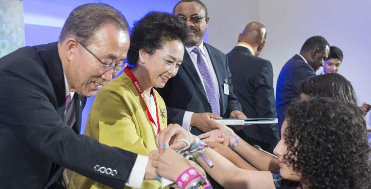 Chinese President Xi Jinping's wife Peng Liyuan attends a high-level meeting of the Global Education First Initiative (GEFI) as UNESCO Special Envoy for the Advancement of Girls and Women's Education, in New York, the United States, Sept. 26, 2015.