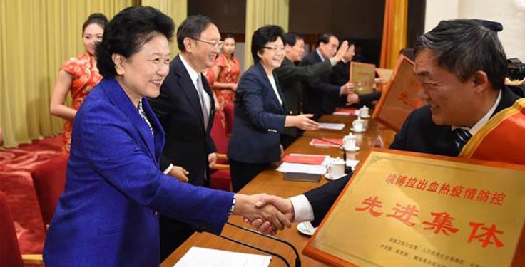 China held a ceremony to award individuals and groups for their outstanding work in fighting against Ebola both at home and in African countries on Nov 25.